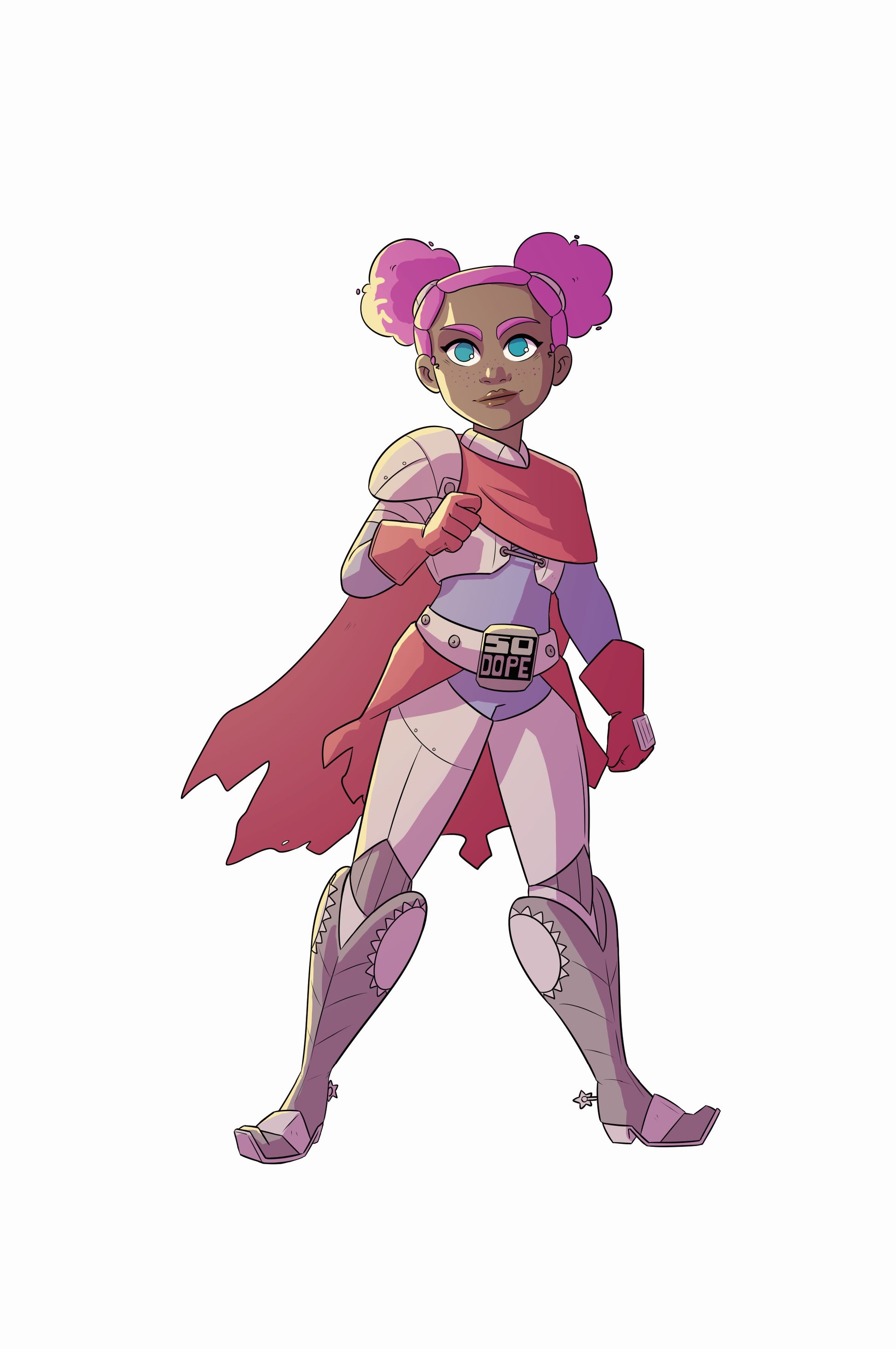 "Kimi Kosmic is a space cowboy living in the Pax, a collection of asteroids on the galaxy's edge. Her life is pretty awesome until a visit from a menacing stranger unveils a mystery behind her half-human heritage. Can Kimi and her adventurous crew defy an evil corporation and find her long-lost Father before it's too late?"